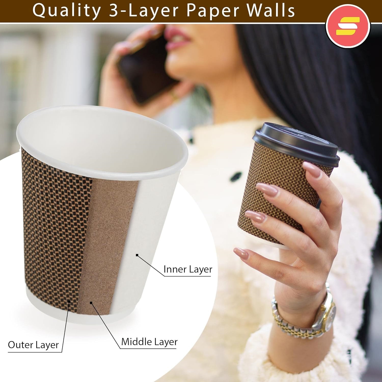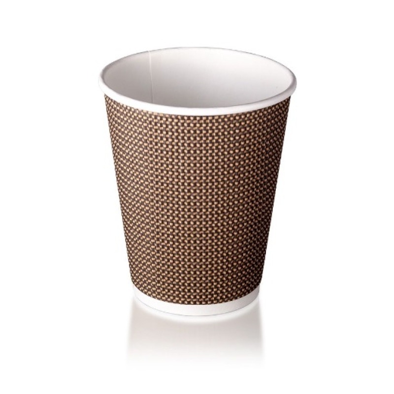 Χάρτινα ποτήρια τριπλού τοιχώματος, σε πλεχτό σχέδιο, ιδανικά για πολύ ζεστά ροφήματα.