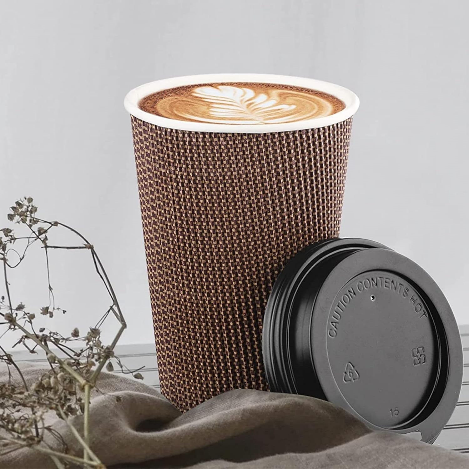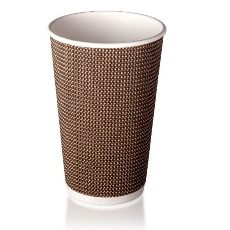 Χάρτινα ποτήρια τριπλού τοιχώματος, σε πλεχτό σχέδιο, ιδανικά για πολύ ζεστά ροφήματα.