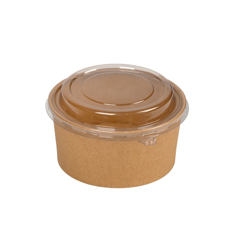 Μπώλ κράφτ καφέ σαλάτας στρόγγυλο με διάφανο καπάκι.